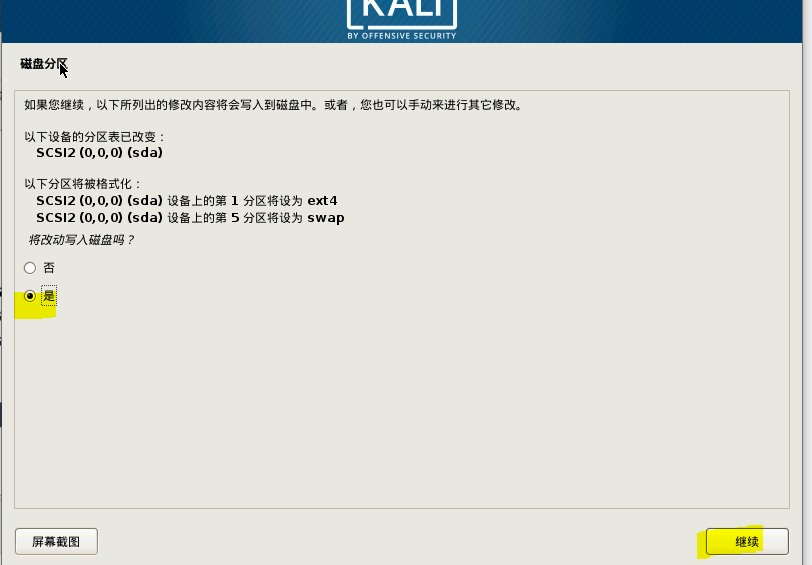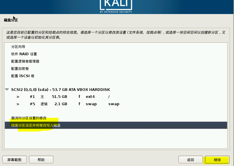 10.磁盘分区 分区向导 选结束分区设定并将修改写入磁盘点继续