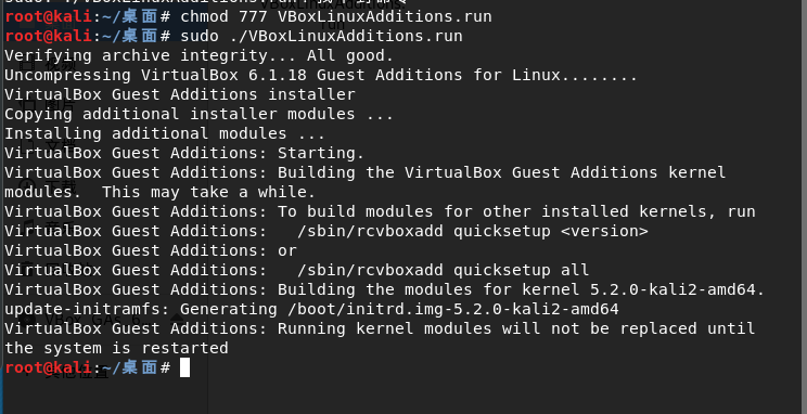 3.执行VBoxLinuxAdditions.run—> sudo ./VBoxLinuxAdditions.run //安装增强功能