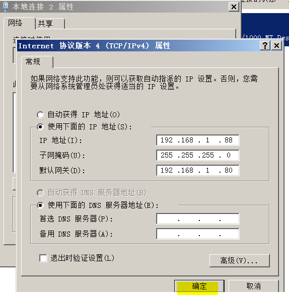 选择 使用下面的IP地址,按照我下面的例子填写 ,点确定–>点关闭 等几分钟