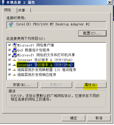 我们点击本地连接2 右键选择属性,点击Internet协议版本4(TCP/IPV4)—>点击属性